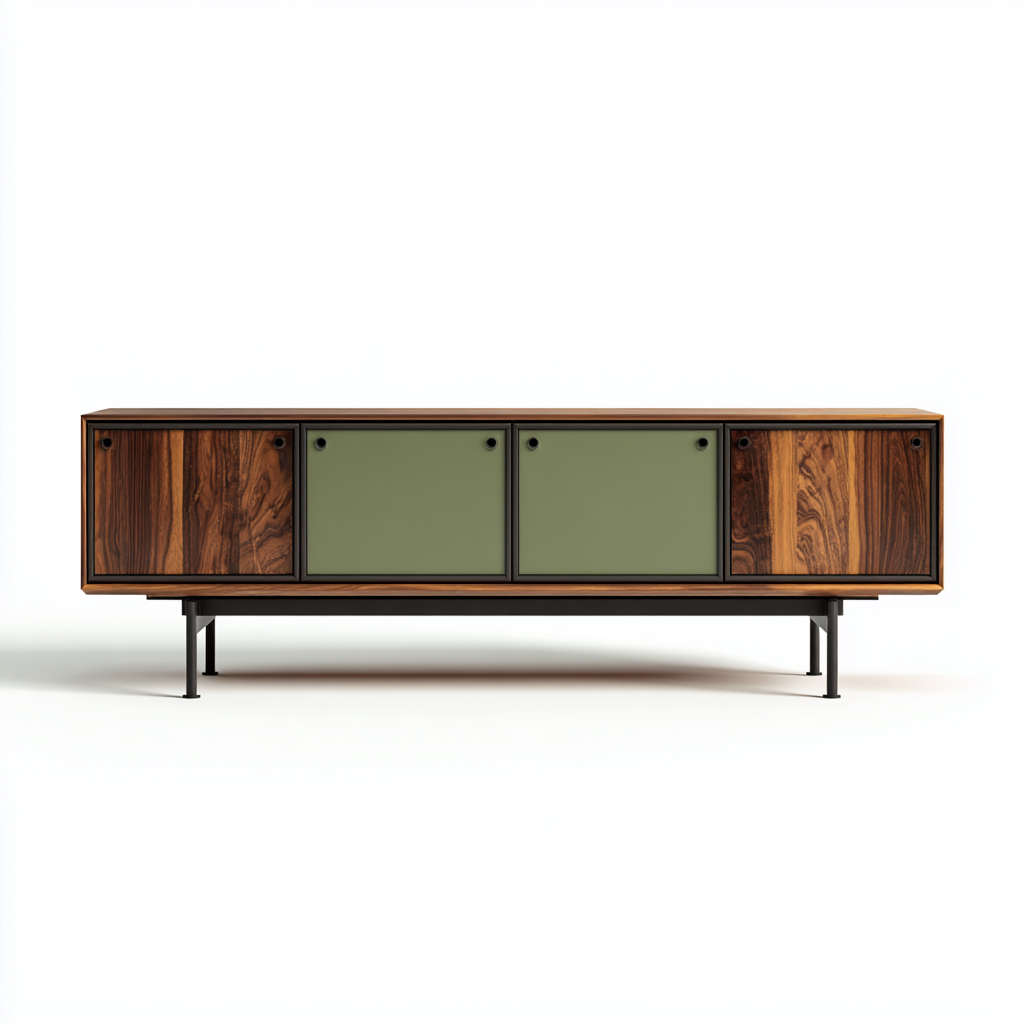 Buffet bois et métal 200x45x70 cm - Bois naturel-Vert - Design contemporain