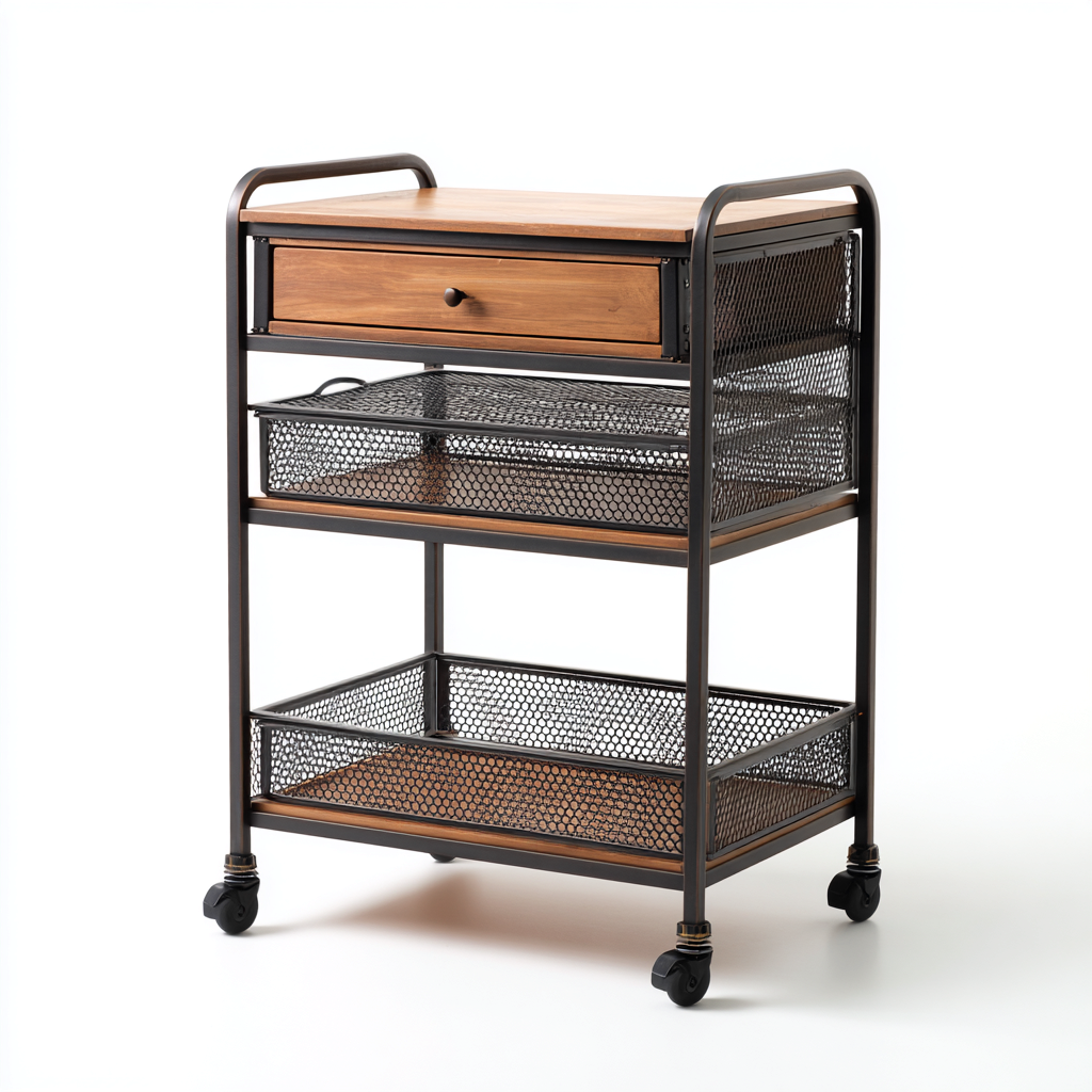 Desserte à roulettes métal 45x30x78 cm - rose - design fonctionnel