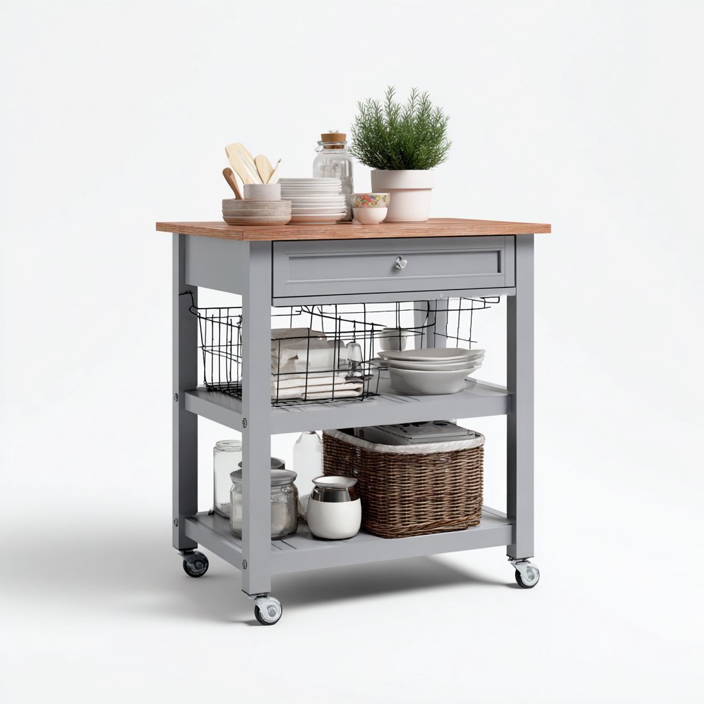 Desserte et chariot de cuisine en bois et métal 80x40x90 cm - gris et bois naturel - style moderne