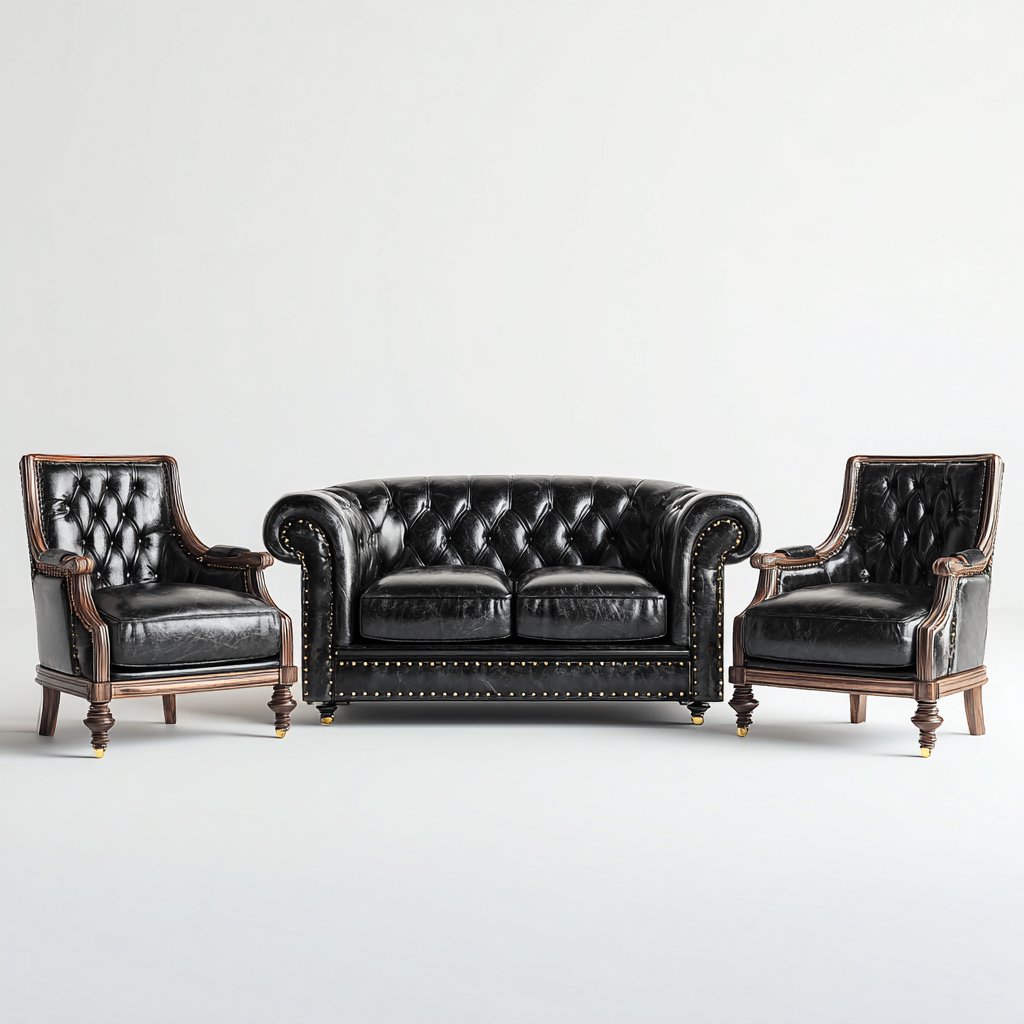 Ensemble de canapés en cuir 3-1-1 210x90x75 cm - noir - style classique