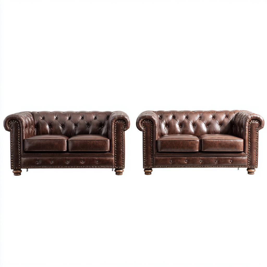 Ensemble de canapés cuir 2 places 165x90x75 cm - marron - style classique