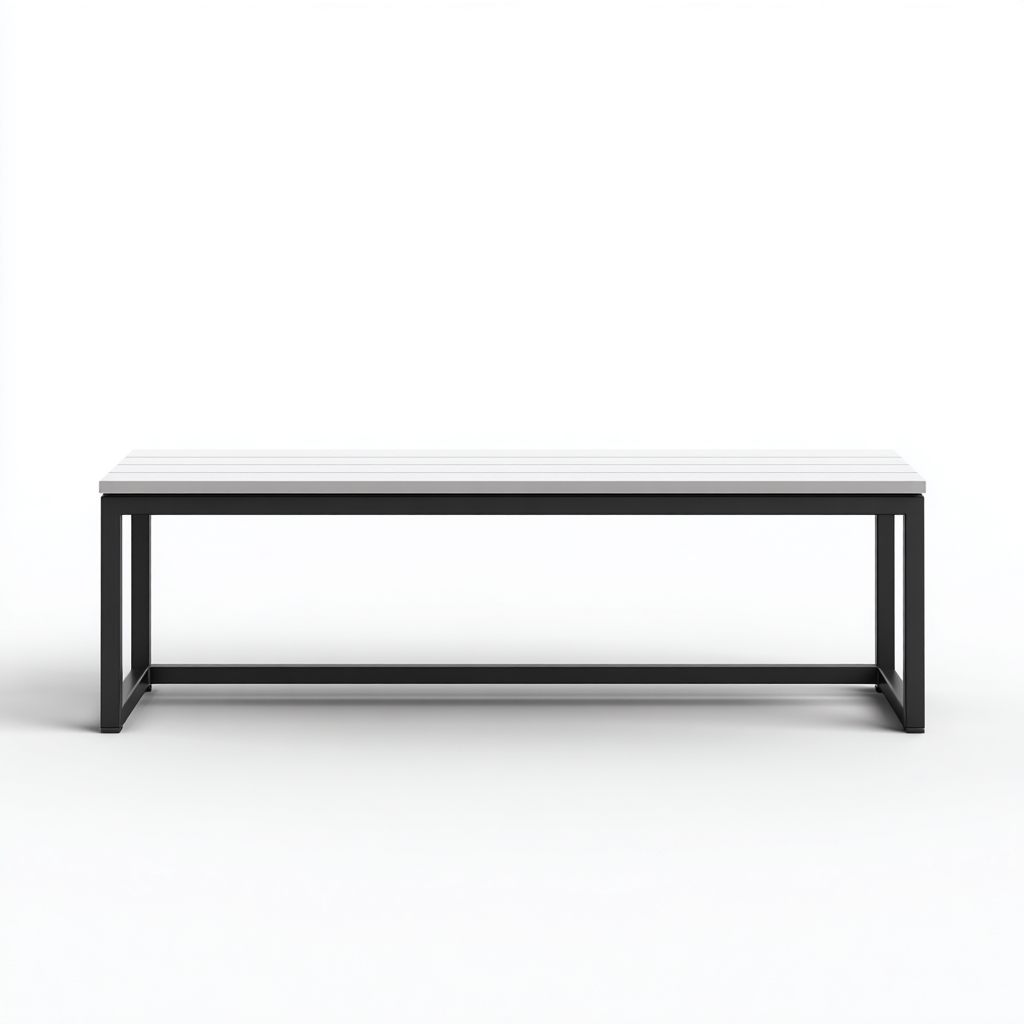 Banc de jardin en métal et composite 160x40x45 cm - blanc-noir - style contemporain - adapté a l extérieur
