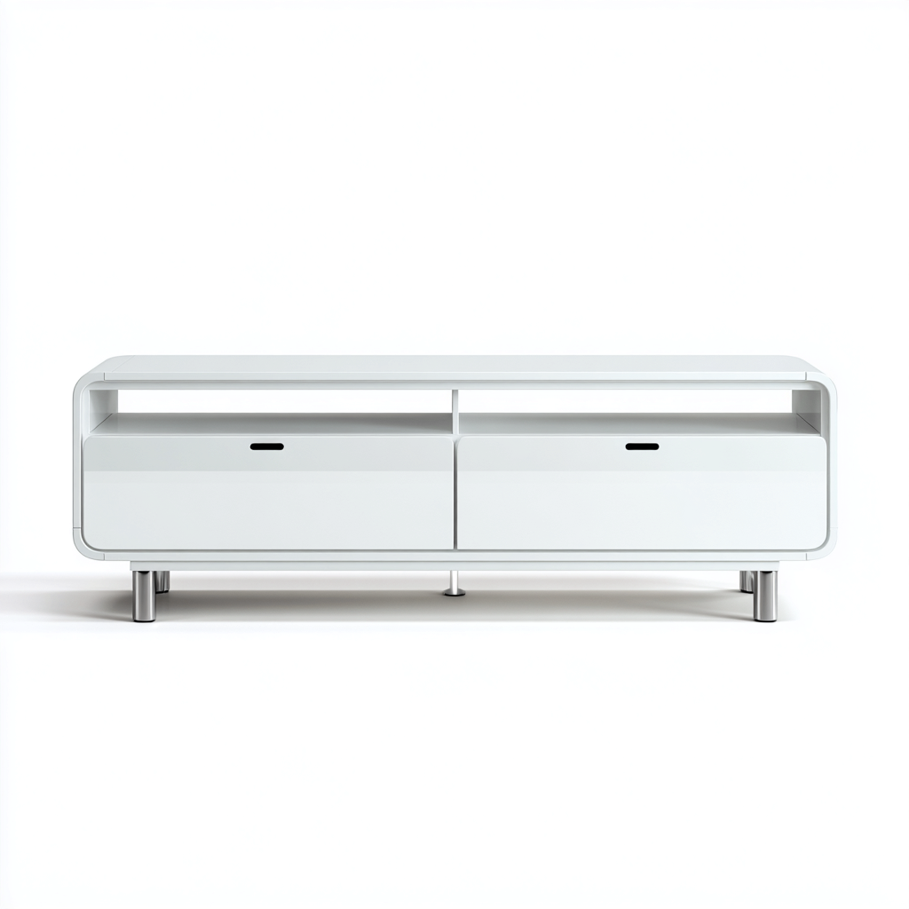 Meuble TV moderne laqué 160x40x45 cm - blanc - style contemporain