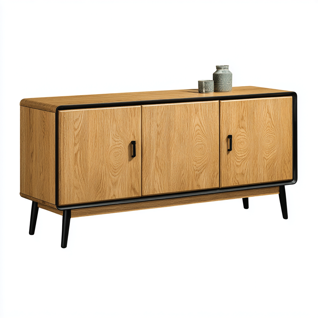 Meuble TV moderne 160x40x45 cm - blanc-bois clair - style scandinave