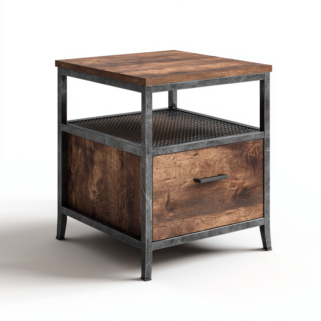 Table de chevet bois et métal 45x40x55 cm - Marron-Noir - Design industriel