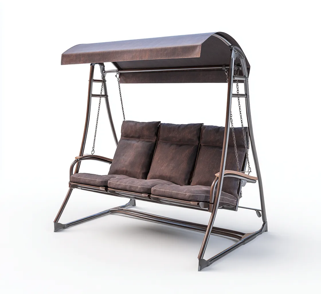 Balancelle de jardin 3 places en métal et tissu 200x120x165 cm - marron - style contemporain