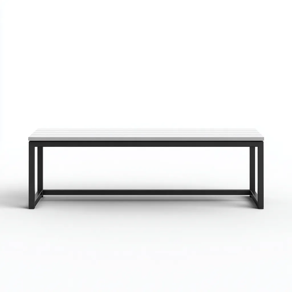 Banc de jardin en métal et composite 160x40x45 cm - blanc-noir - style contemporain - adapté a l extérieur