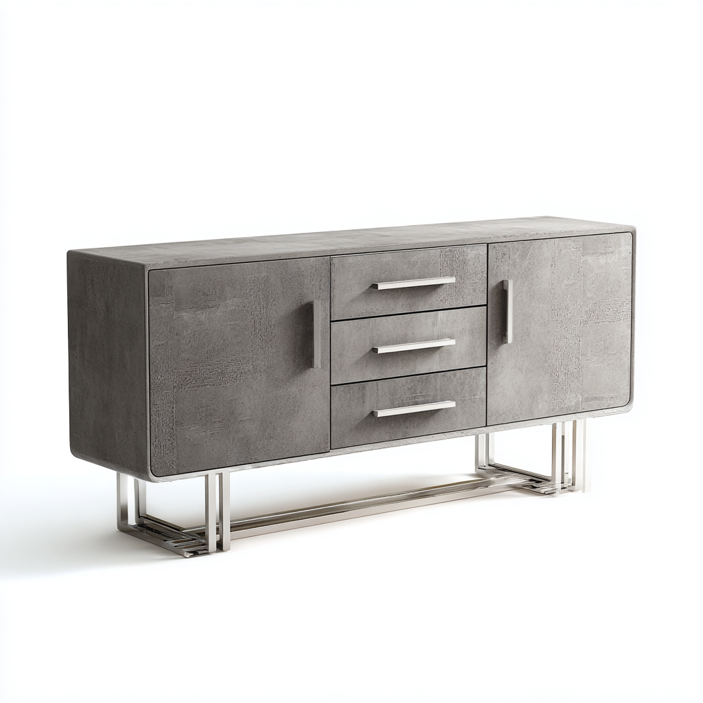 Buffet contemporain finition effet béton avec tiroirs et portes 180x45x75 cm - gris - design moderne