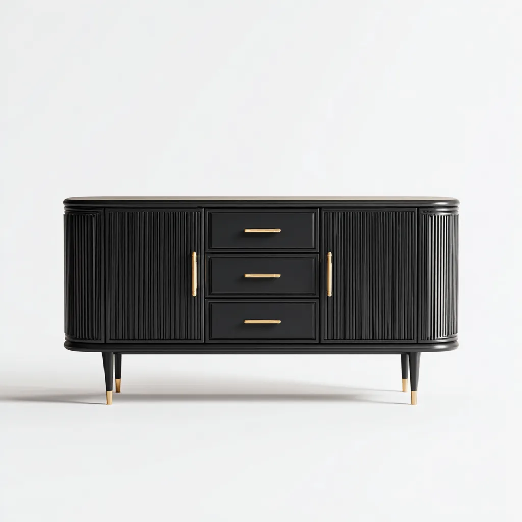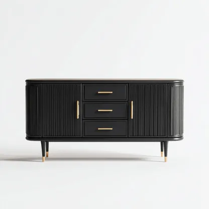 Buffet en bois 160x45x80 cm - noir et laiton - style contemporain