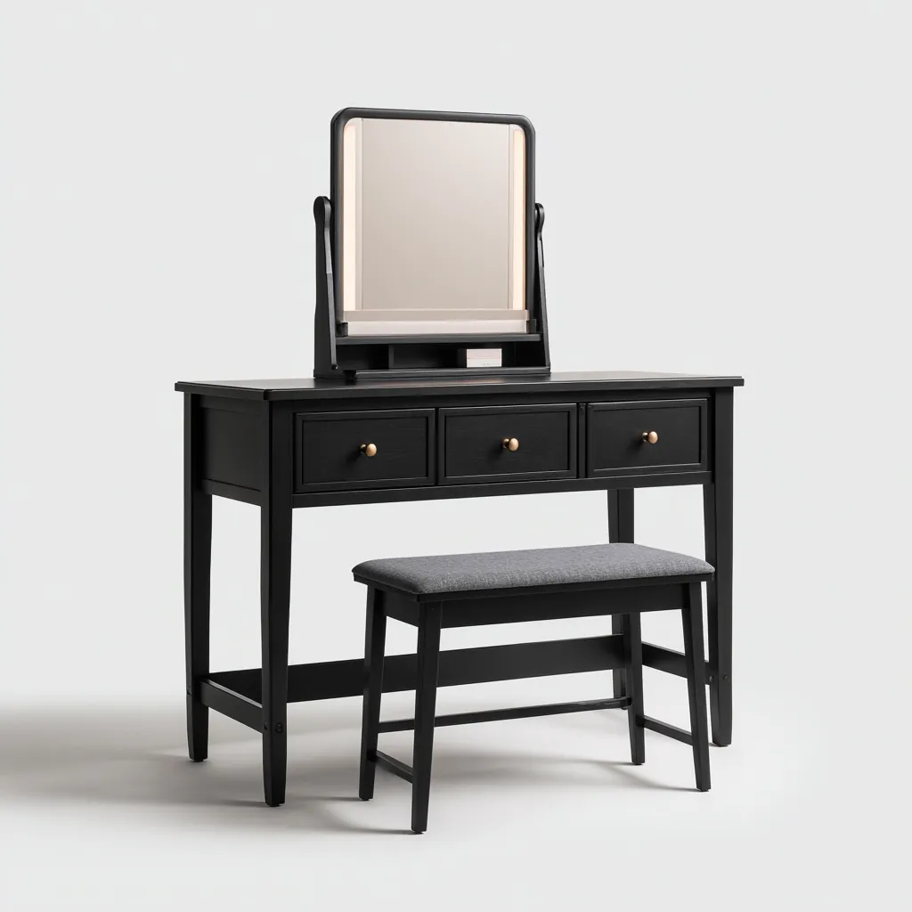 Coiffeuse bois 110x40x145 cm - noir - design moderne