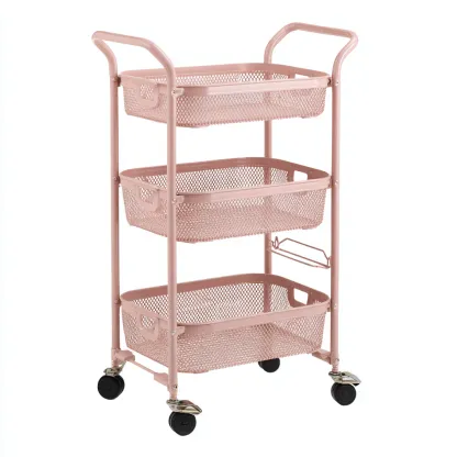 Desserte à roulettes métal 45x30x78 cm - rose - design fonctionnel