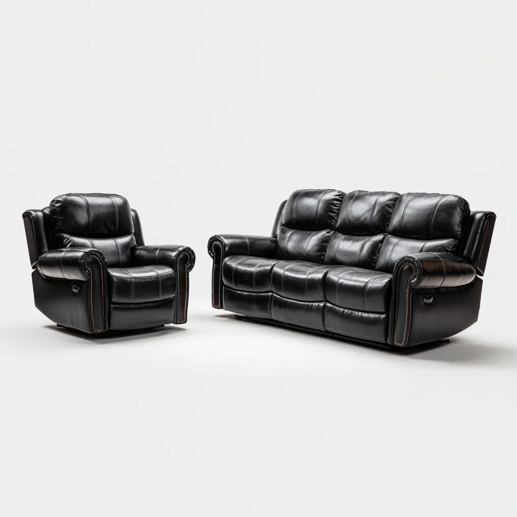 Ensemble de canapés cuir 3 places 200x95x100 cm et fauteuil 100x95x100 cm - noir - confort relax