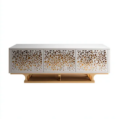 Meuble TV avec portes décoratives 180x40x48 cm - blanc-or - style moderne élégant
