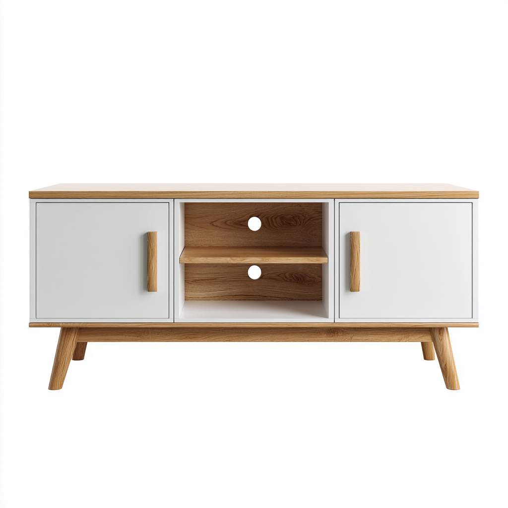Meuble TV avec portes et niches 160x40x50 cm - blanc - style scandinave
