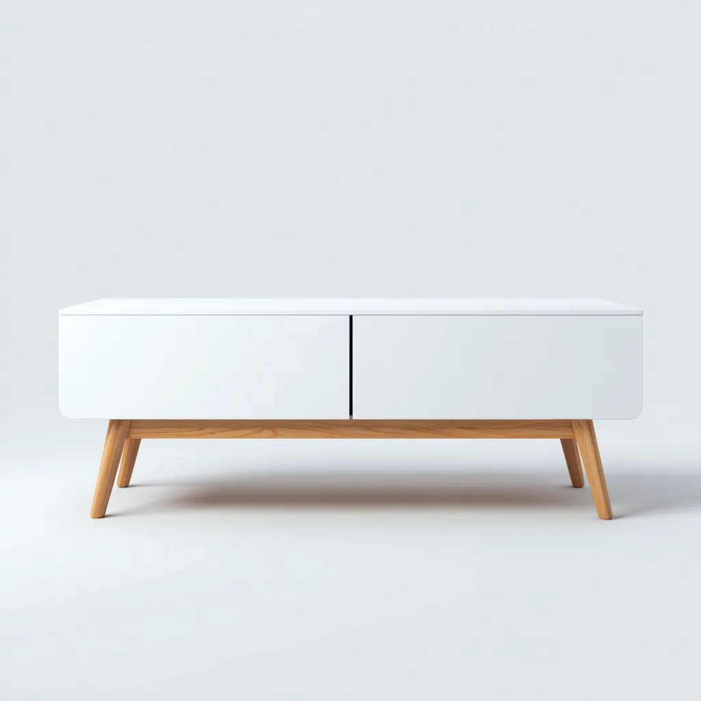 Meuble TV moderne 160x40x45 cm - blanc-bois clair - style scandinave