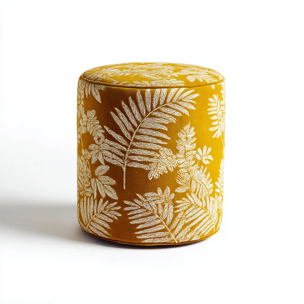 Pouf tissu imprimé 40x40x45 cm Jaune Design décoratif