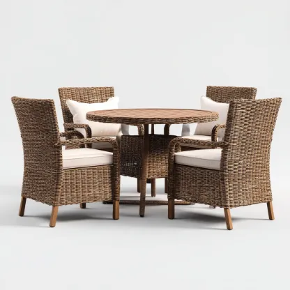 Salon de jardin repas en résine tressée 120x120x75 cm - marron-beige - style naturel - adapté au jardin