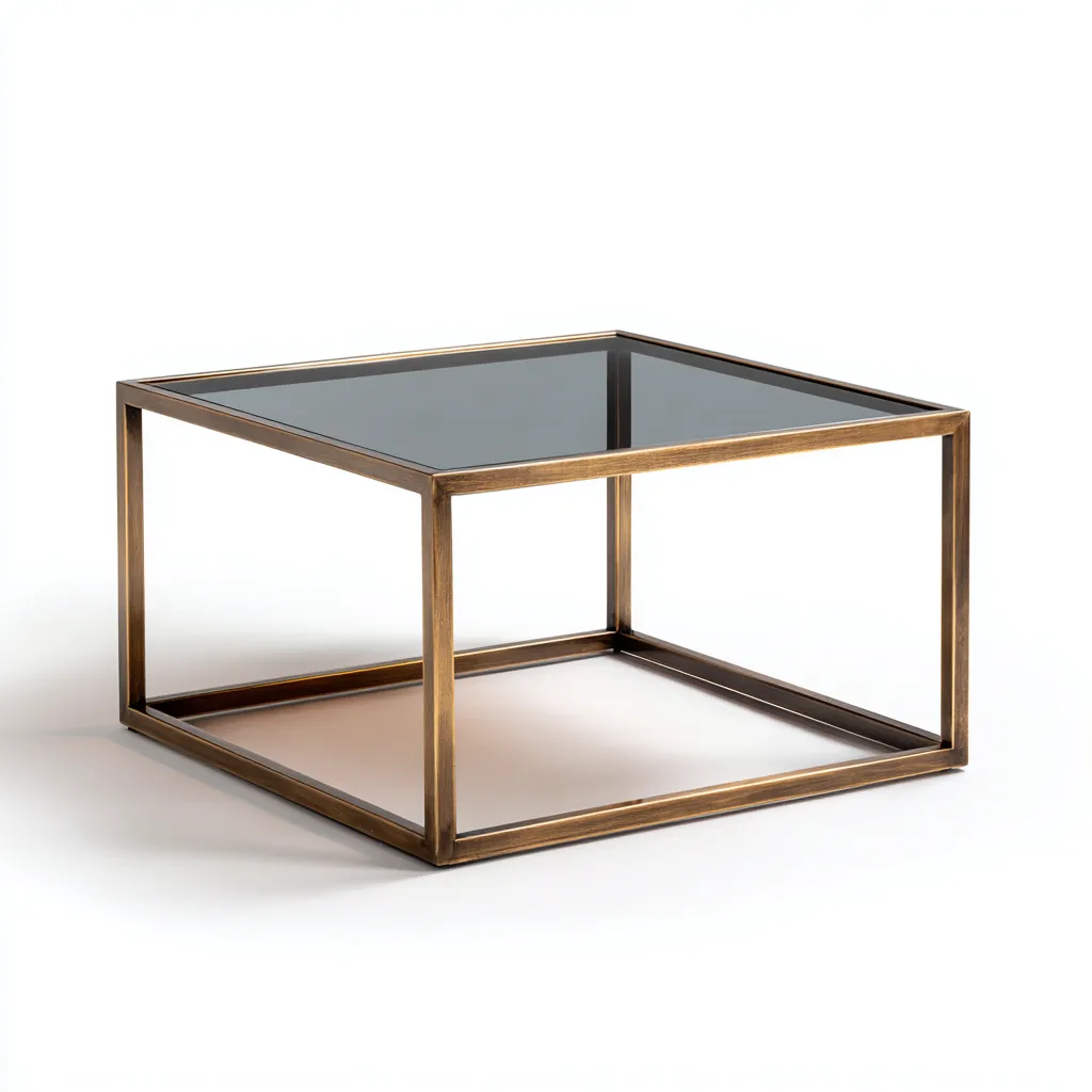 Table basse carrée avec plateau en verre 80x80x40 cm - bronze-noir - style moderne