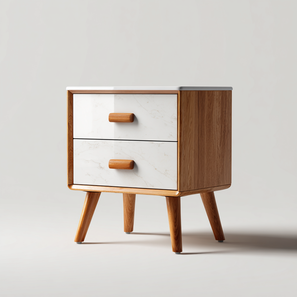 Table de chevet bois et MDF 48x40x55 cm - blanc-bois - style contemporain