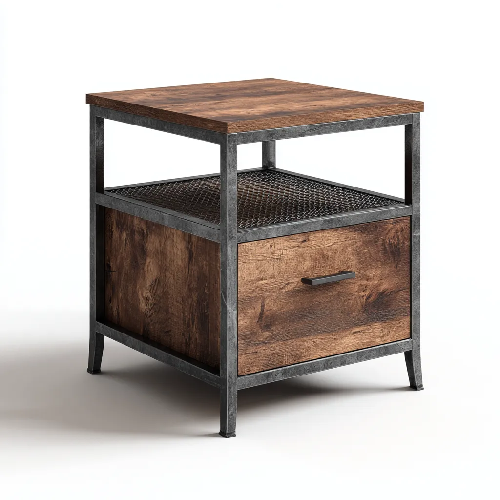 Table de chevet en bois et métal avec tiroir 45x40x55 cm - marron-noir - style industriel - adaptée à la chambre