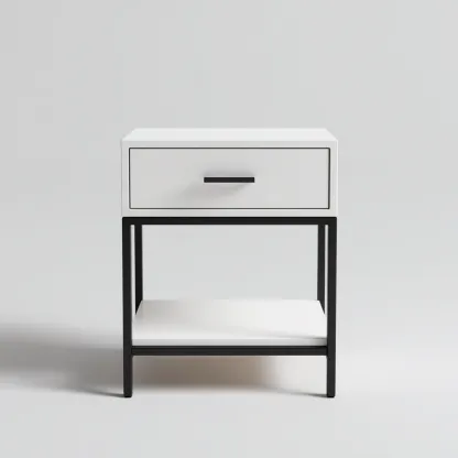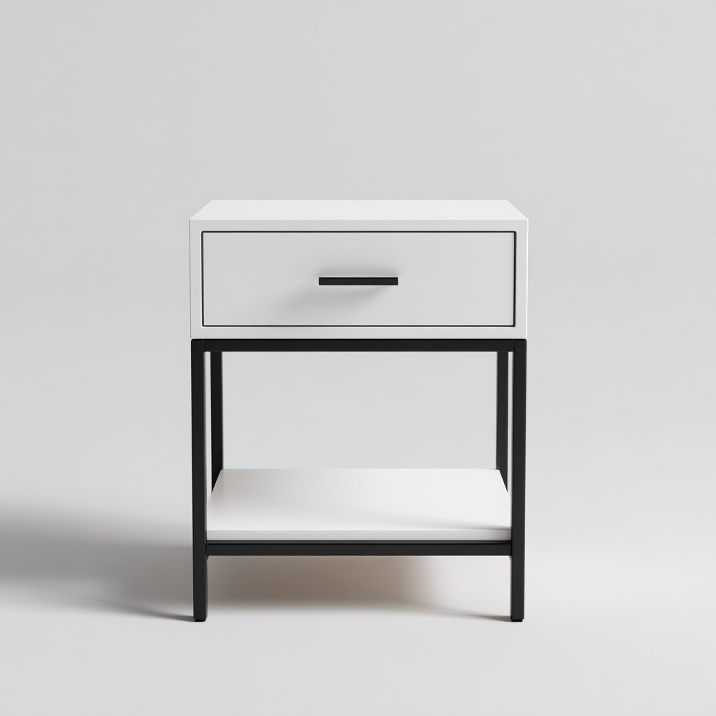 Table de chevet métal et bois 45x35x60 cm - blanc-noir - design moderne